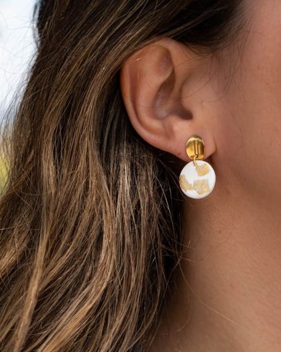 Ετικέτες: gifts for her, statement earrings, πολυμερικος πηλός, σκουλαρίκια, σκουλαρίκια λευκά χρυσά, χειροποιητα κοσμηματα