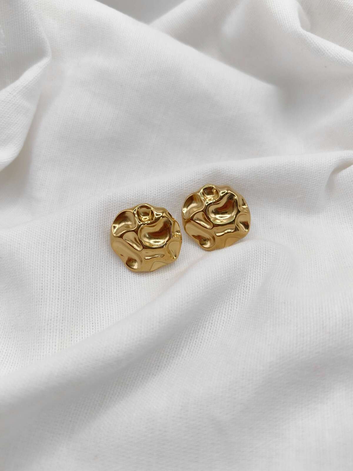 Κομψά στρογγυλά σκουλαρίκια από ανοξείδωτο ατσάλι με ιδιαίτερη, κυματιστή επιφάνεια που θυμίζει υγρή λάβα. Προσθέτουν μια μοντέρνα και εκλεπτυσμένη πινελιά σε κάθε εμφάνιση. Είναι αδιάβροχα και δεν αλλοιώνεται το χρώμα τους, ιδανικά για καθημερινή χρήση ή βραδινές εξόδους.