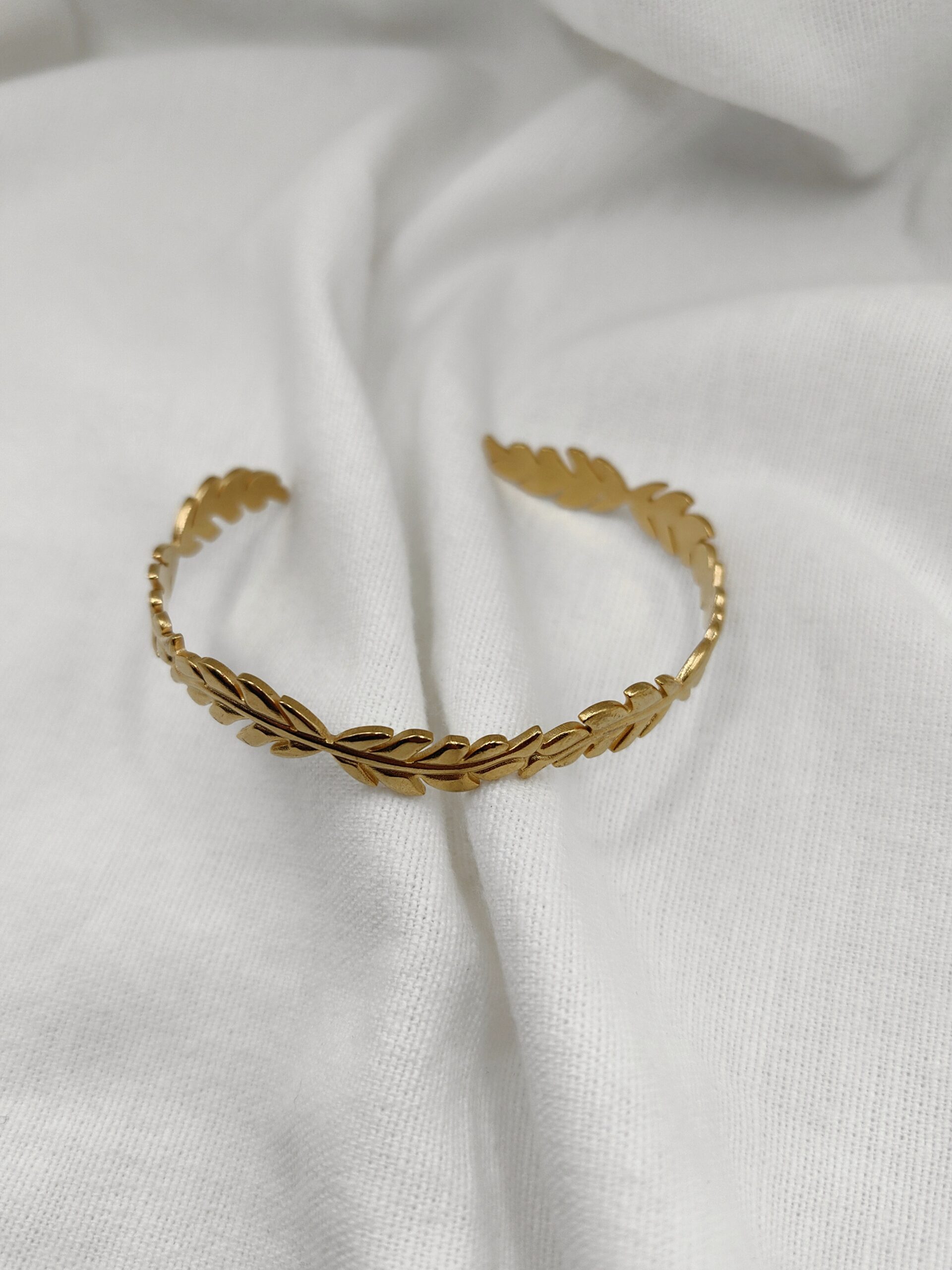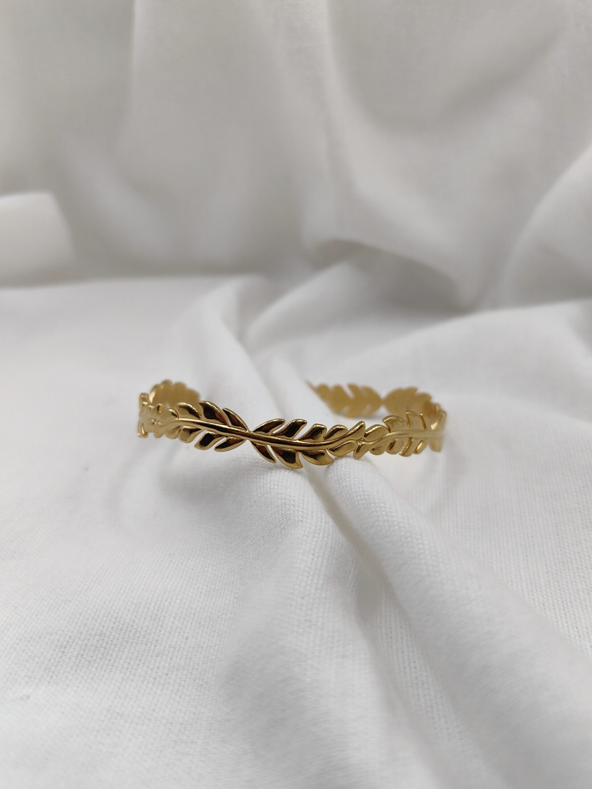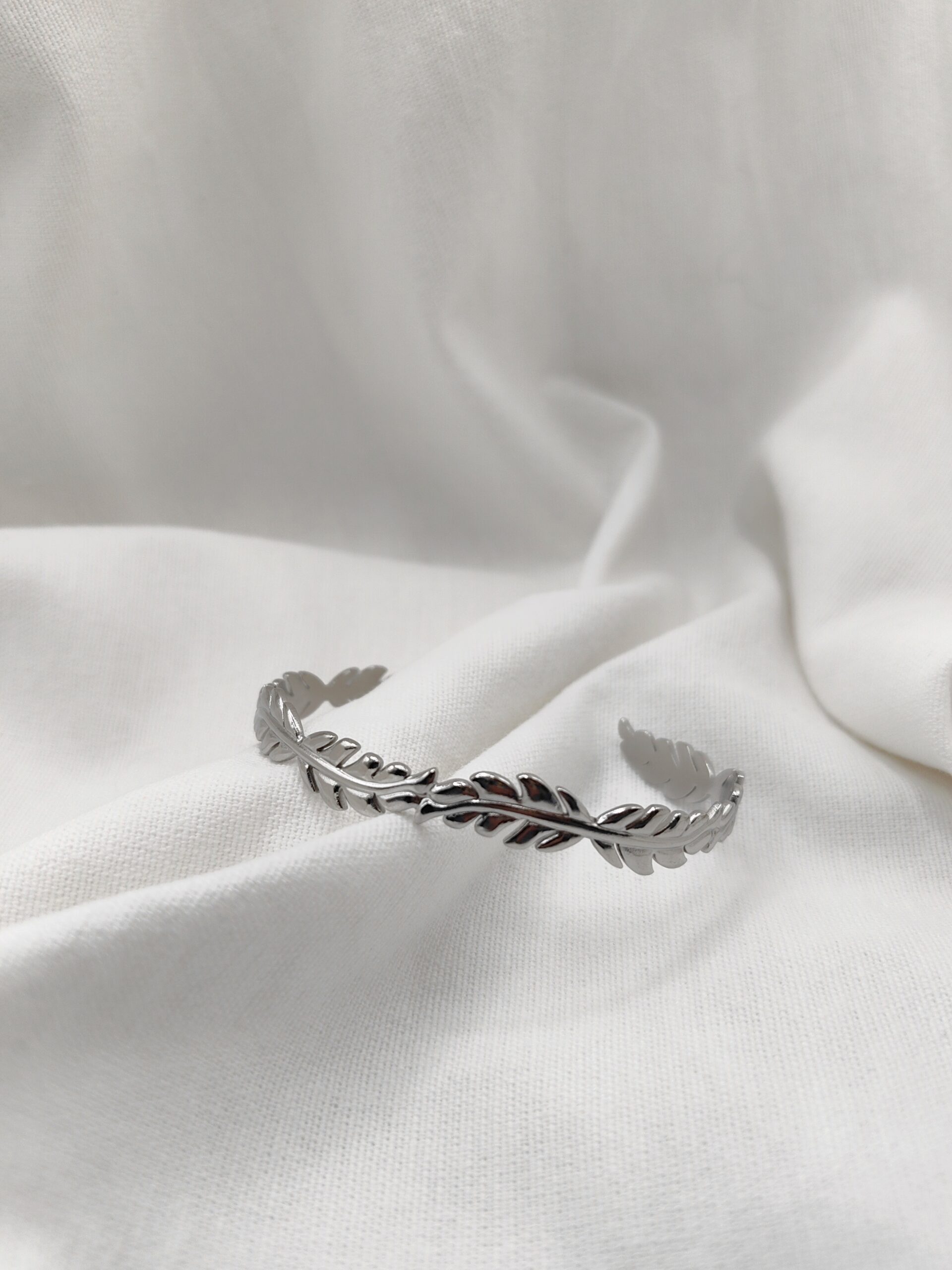 Χειροπέδα βραχιόλι από ατσάλι με σχέδιο φύλλου και ασημί απόχρωση που φωτίζει διακριτικά τον καρπό. Ελαφρύ και άνετο, φοριέται μόνο του ή σε συνδυασμό με άλλα κοσμήματα, από το πρωί έως το βράδυ. Ένα κομψό, διαχρονικό αξεσουάρ που ταιριάζει σε κάθε στυλ και αποτελεί όμορφη επιλογή για δώρο.