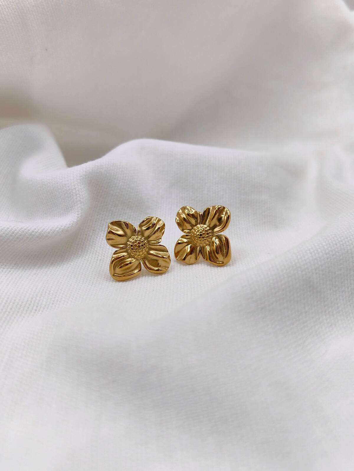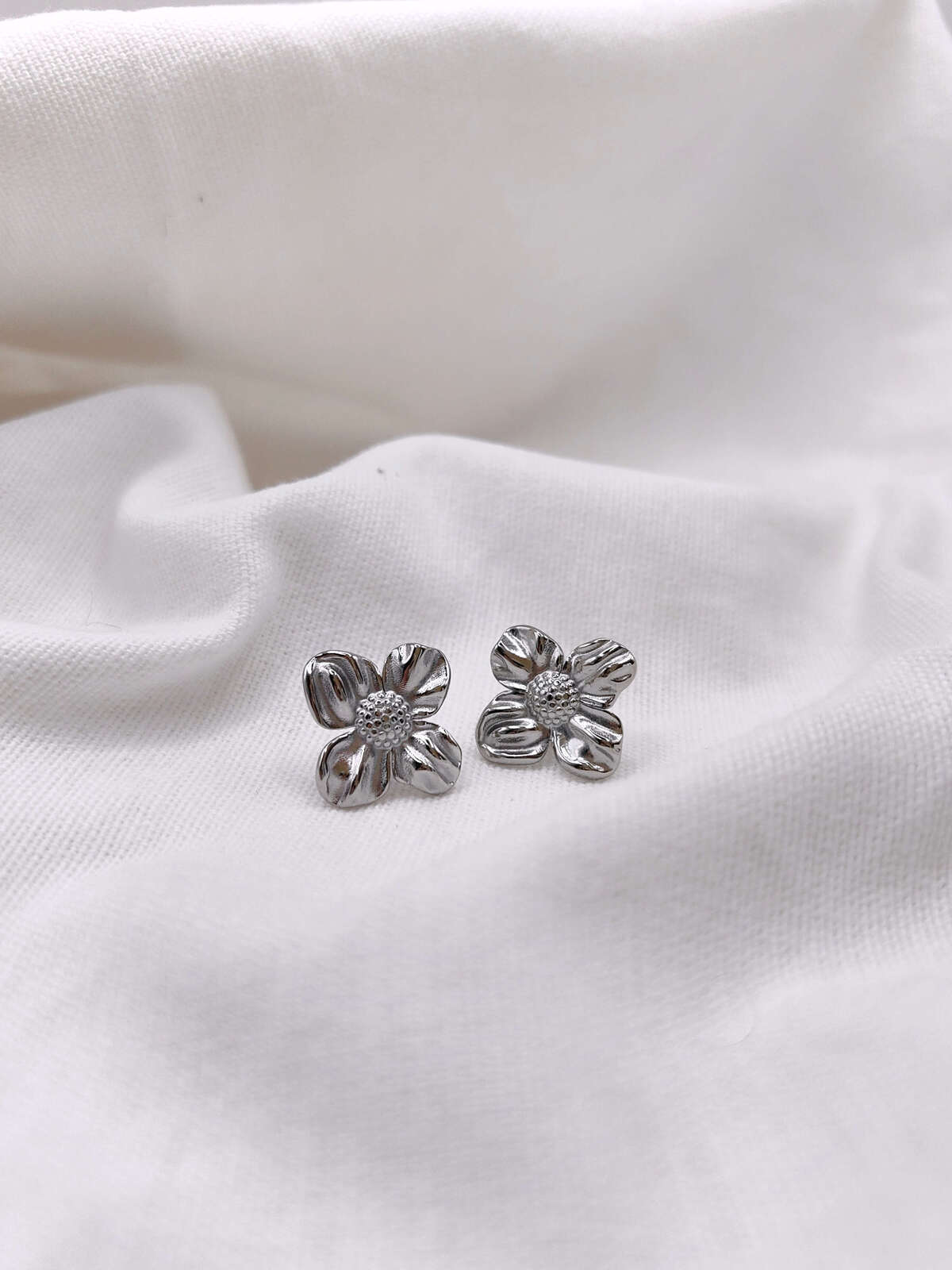 Σκουλαρίκια από ανοξείδωτο ατσάλι με κομψό ανάγλυφο σχέδιο λουλουδιού και λεπτομέρεια στο κέντρο που δίνει extra λάμψη. Θηλυκά αλλά και ευκολοφόρετα, προσθέτουν μια διακριτική, elegant πινελιά σε κάθε εμφάνιση — από το office look μέχρι τις βραδινές εμφανίσεις. Είναι αδιάβροχα και δεν αλλοιώνεται το χρώμα τους, ώστε να παραμένουν λαμπερά στο χρόνο.