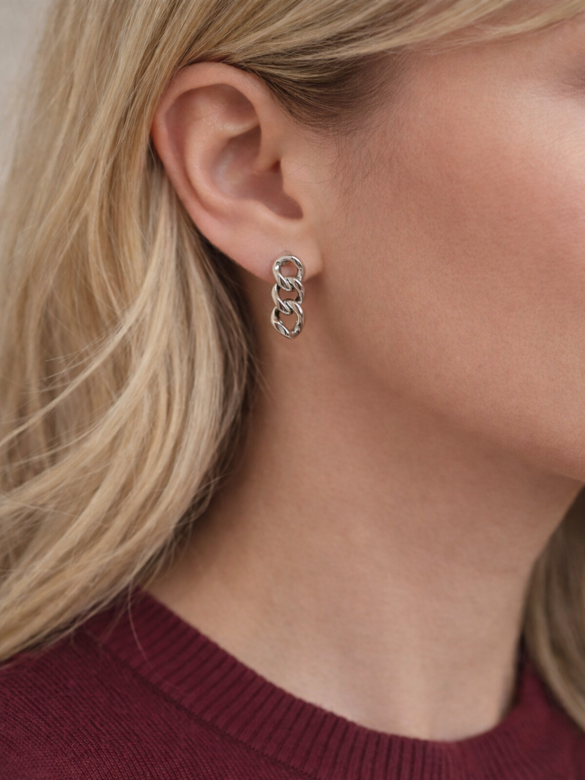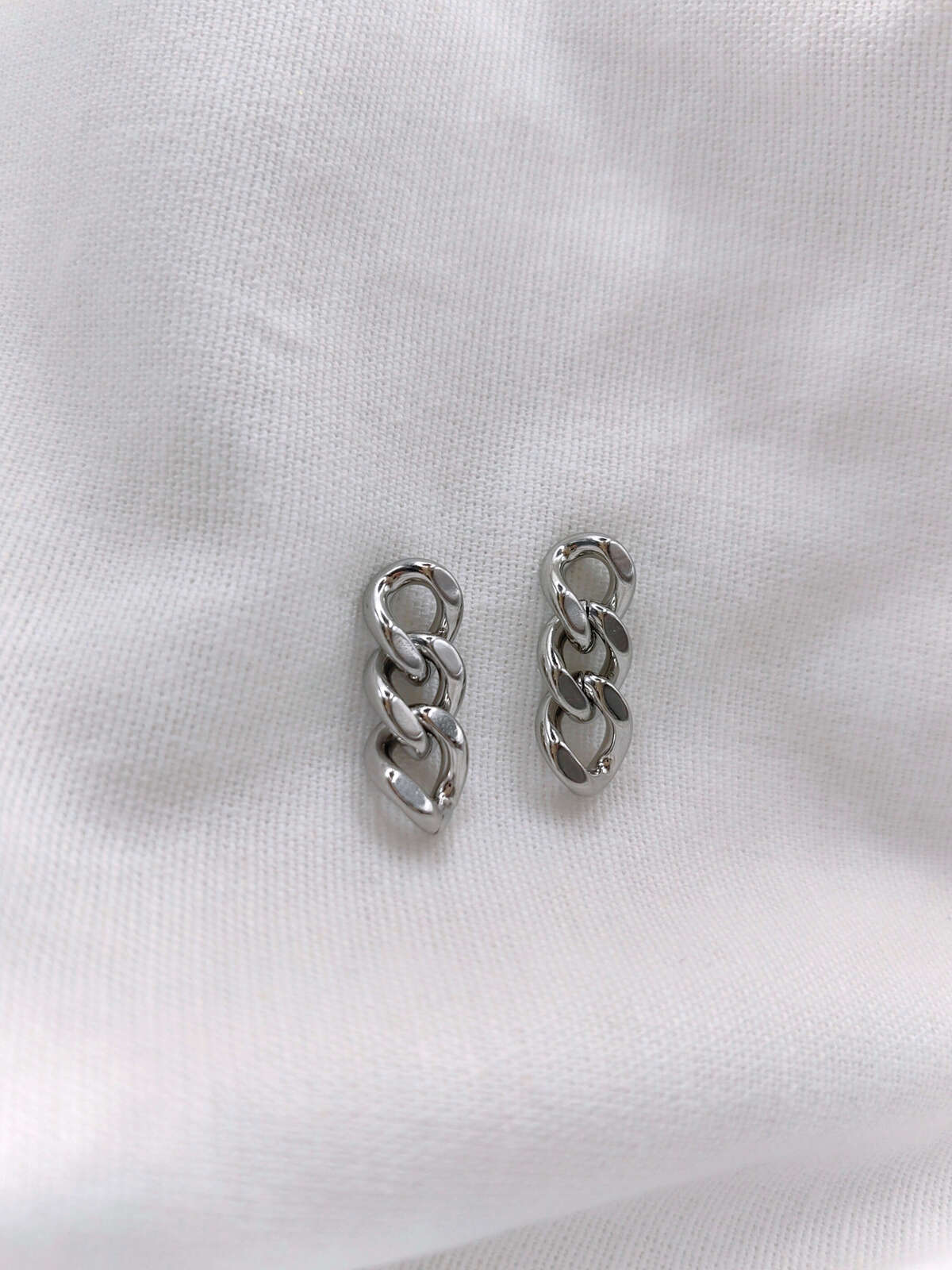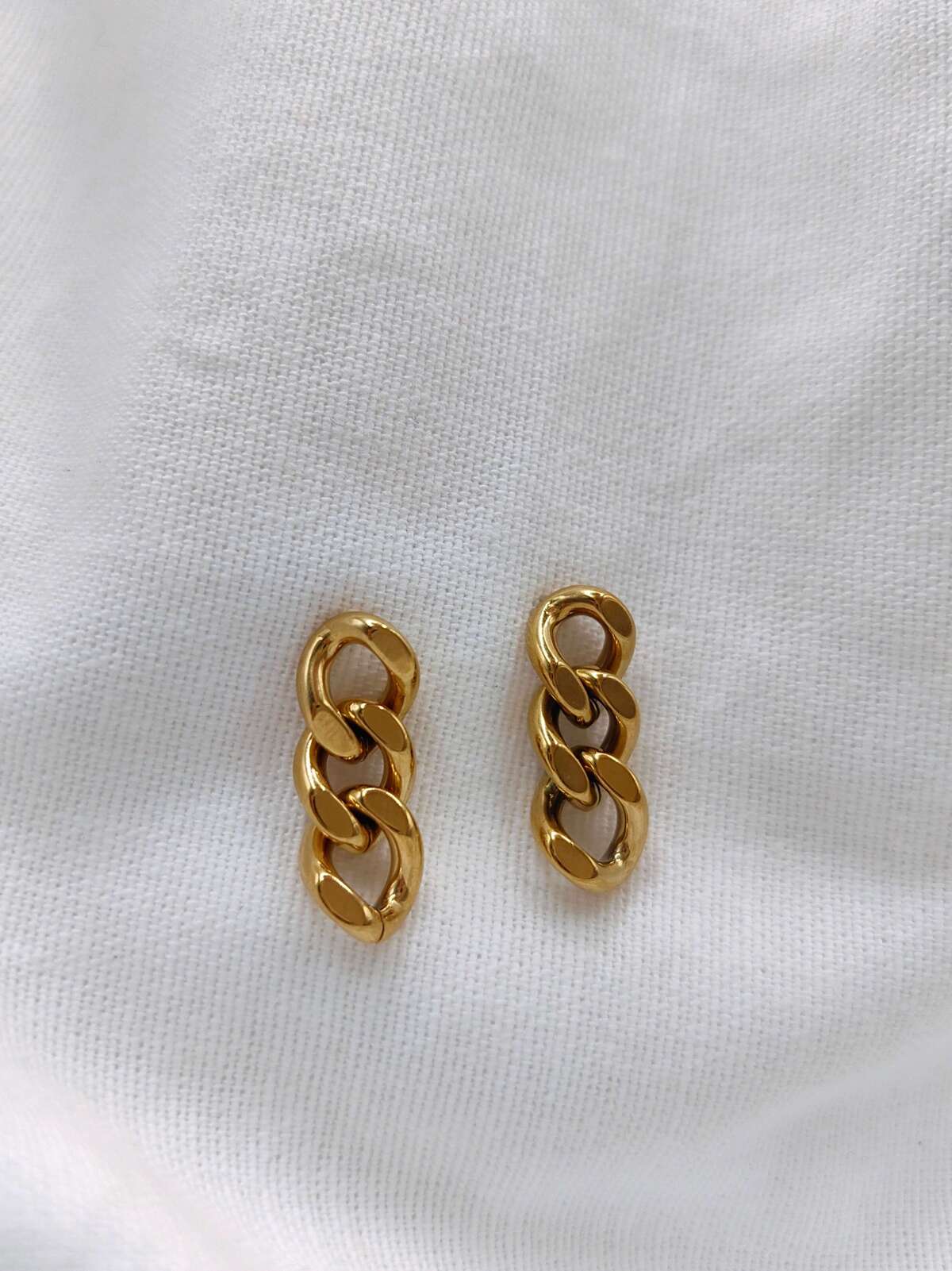 Σκουλαρίκια από ανοξείδωτο ατσάλι σε χρυσαφί και ασημένια απόχρωση με λεπτό, “chain-style” design σε μίνι μέγεθος, ιδανικά για clean αλλά statement λεπτομέρεια στο αυτί. Είναι αδιάβροχα και δεν αλλοιώνεται το χρώμα τους με τη χρήση ή τον χρόνο για άνετη, καθημερινή χρήση. Μήκος περίπου 2εκ.