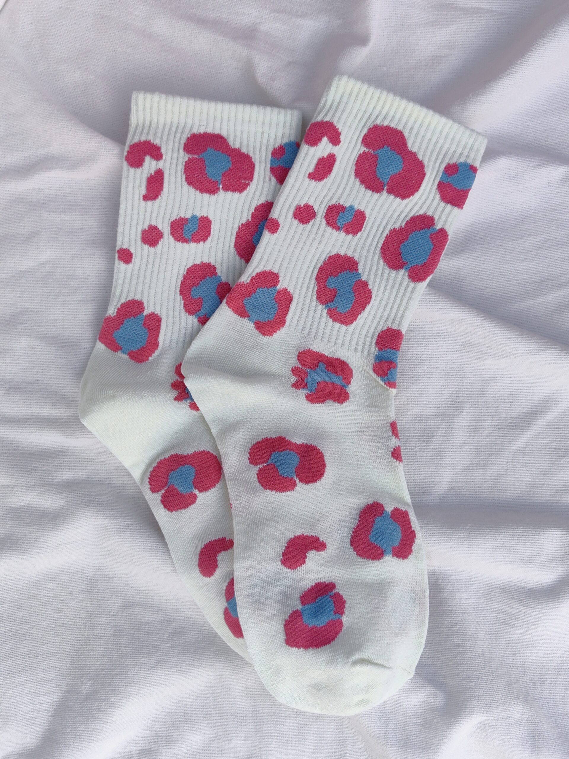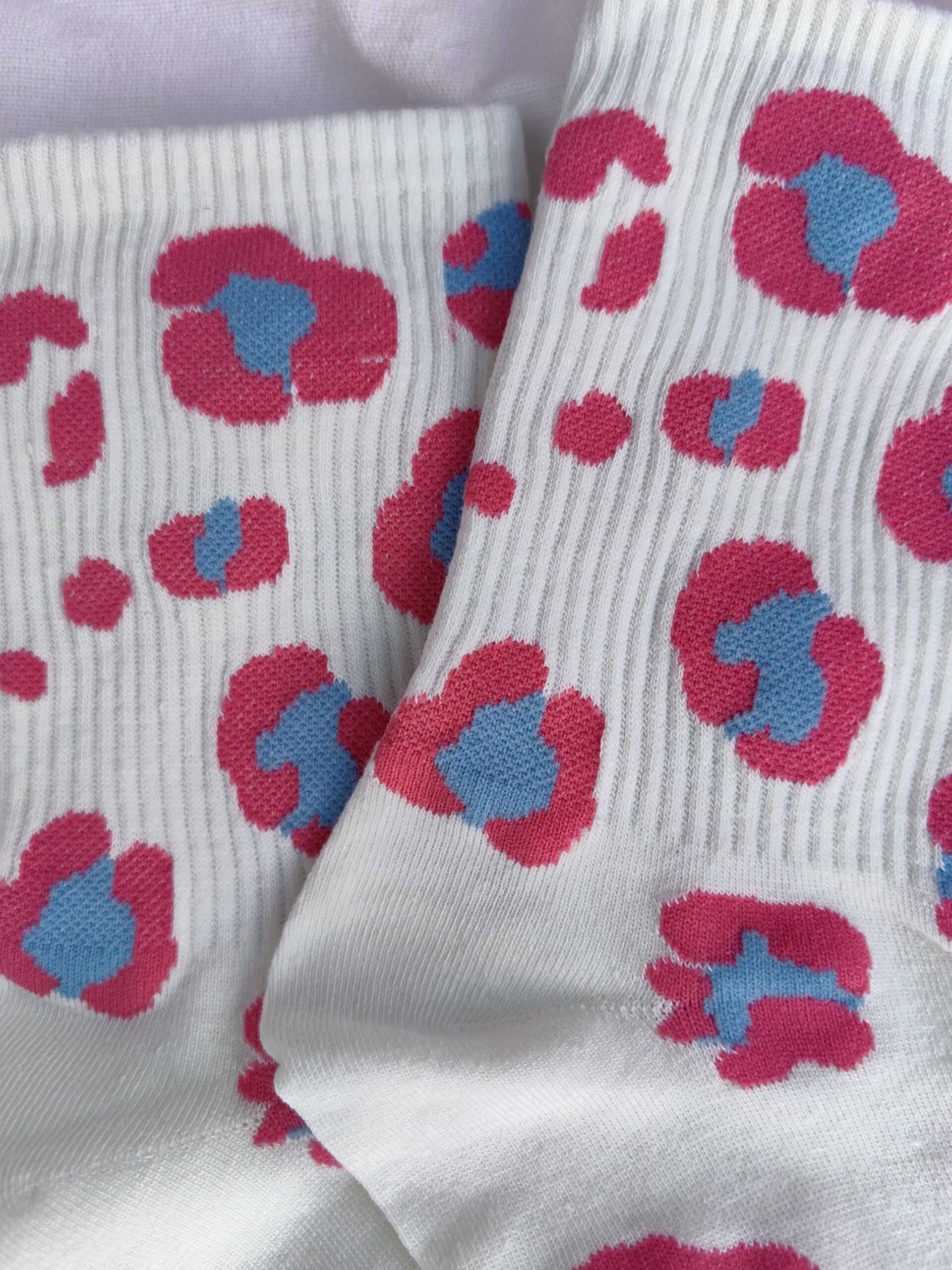 Απαλές λευκές κάλτσες με μοτίβο λεοπάρ, σχεδιασμένες για μικρές καθημερινές δόσεις αγάπης. Ένα χαρούμενο, cozy αποτέλεσμα που φοριέται εύκολα από το σπίτι μέχρι τη βόλτα.