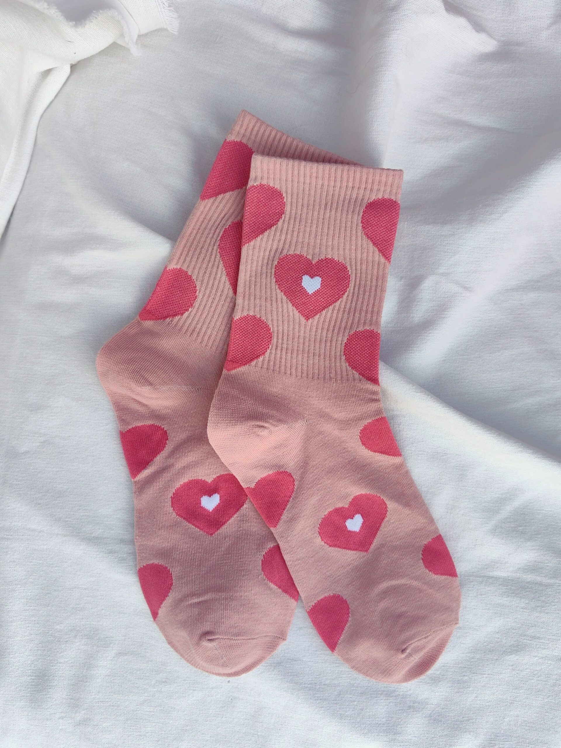 Απαλές ροζ κάλτσες με μοτίβο καρδιές, σχεδιασμένες για μικρές καθημερινές δόσεις αγάπης. Η ζεστή ροζ απόχρωση και οι φουξ καρδιές δημιουργούν ένα χαρούμενο, cozy αποτέλεσμα που φοριέται εύκολα από το σπίτι μέχρι τη βόλτα.